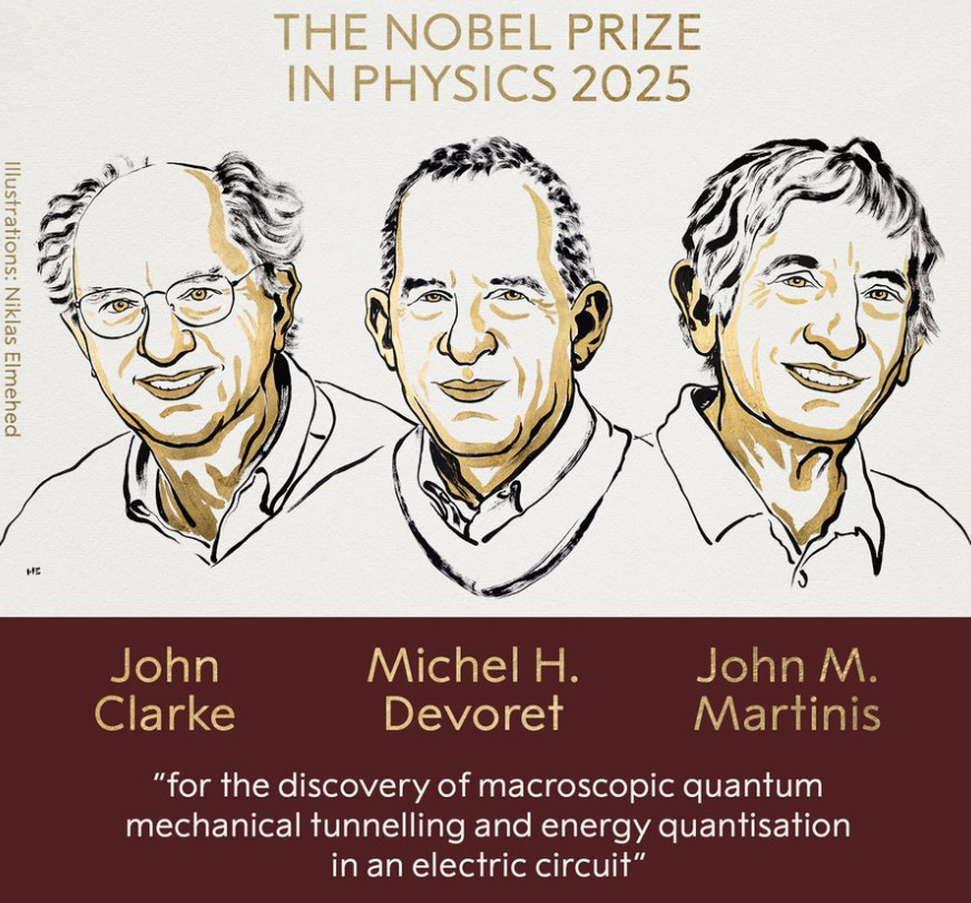Лауреатами Нобелевской премии 2025 года по физике стали Джон Кларк, Мишель Деворе и Джон Мартинис. Об этом сообщила Шведская королевская академия наук.