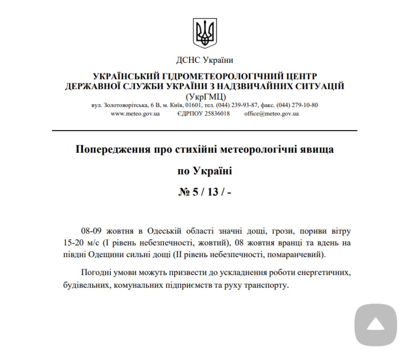 В частности, 8 октября утром и днем на юге Одесской области пройдут сильные дожди — II уровень опасности, оранжевый.