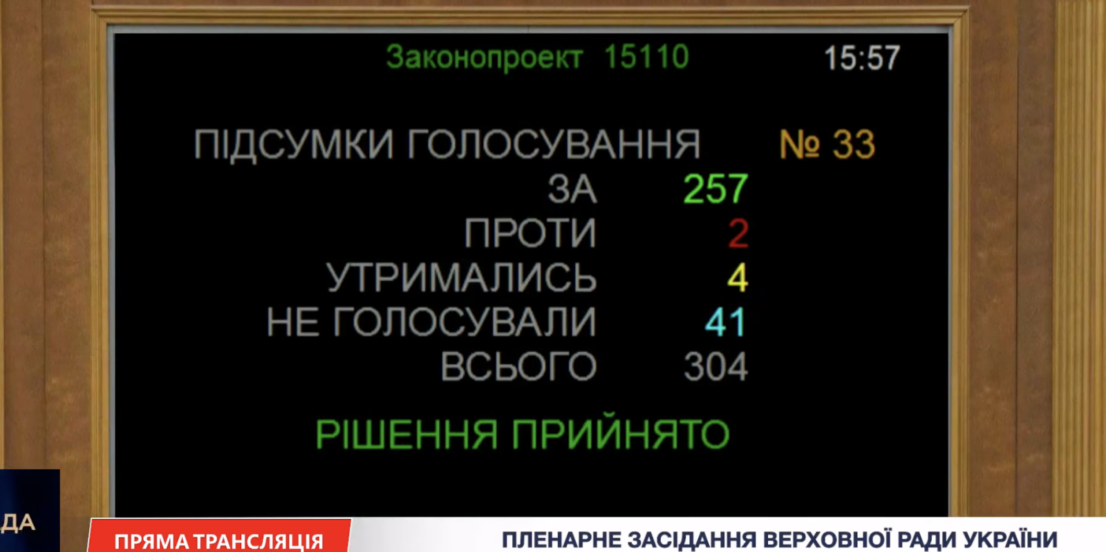 Верховная Рада приняла законопроект о взимании военного сбора в 5% еще на три года после отмены военного положения. Речь идет о законопроекте № 15110. За проголосовали 257 депутатов.