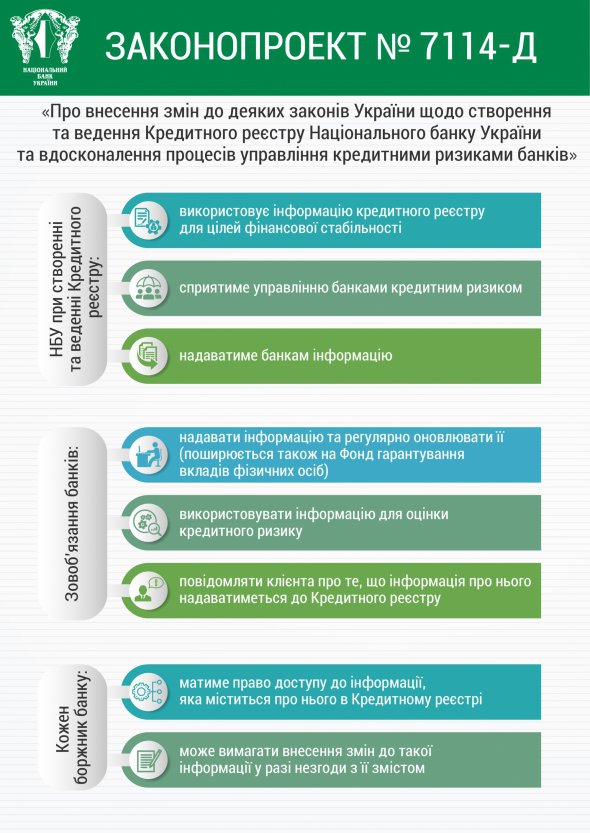 Обязательство по созданию кредитного реестра Украины приняла в 2015 году в Соглашении об ассоциации с Евросоюзом. Затем оно вошло в соглашение с МВФ.