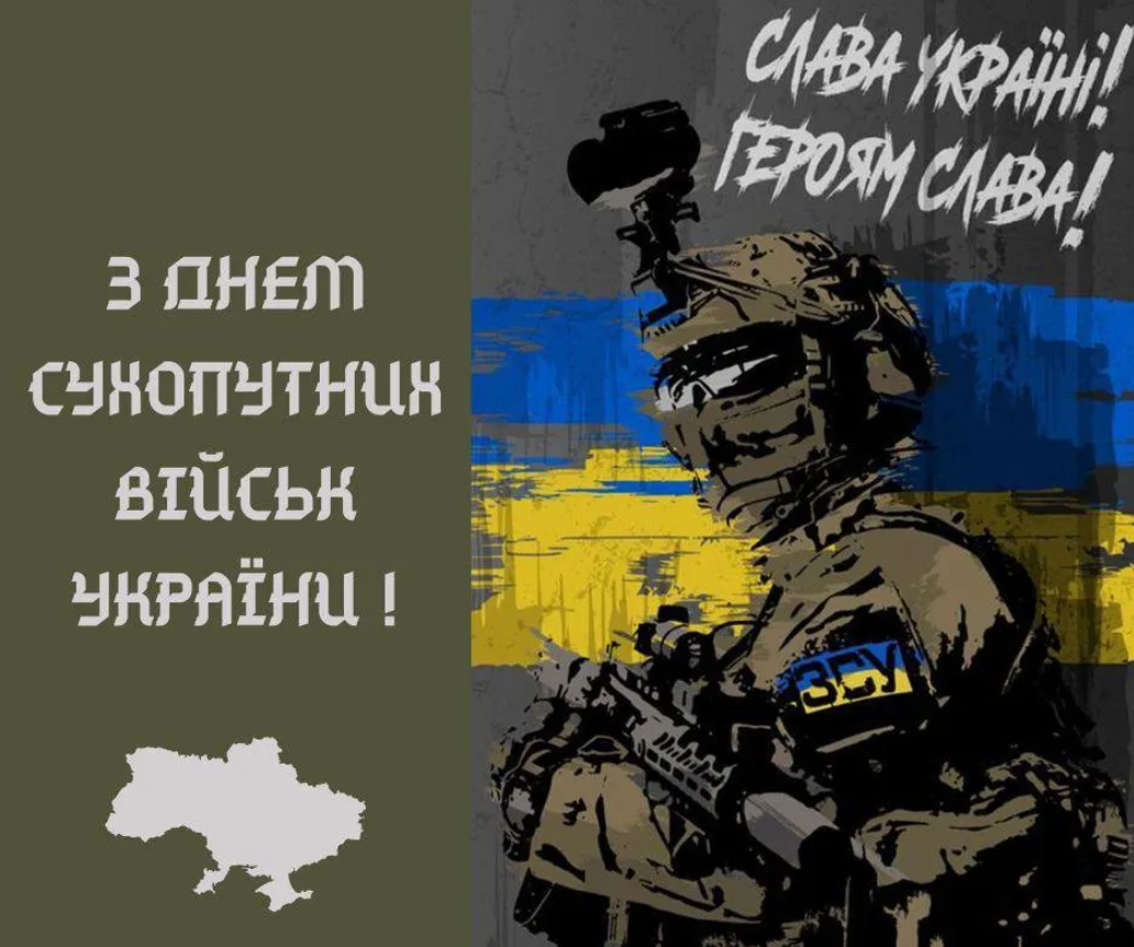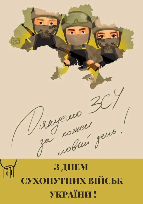 Вітаємо всіх, хто служить у лавах Сухопутних військ. Ви стоїте там, де найважче, і тримаєте лінію, за якою живе країна. Нехай ваша сила множиться підтримкою рідних, а кожен день служби буде ще одним кроком до мирного життя.