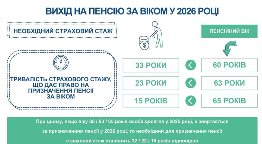 Так, в соответствии со статьей 26 Закона Украины «Об общеобязательном государственном пенсионном страховании» продолжительность страхового стажа, дающего право на назначение пенсии по возрасту в 2025 году, составляет: