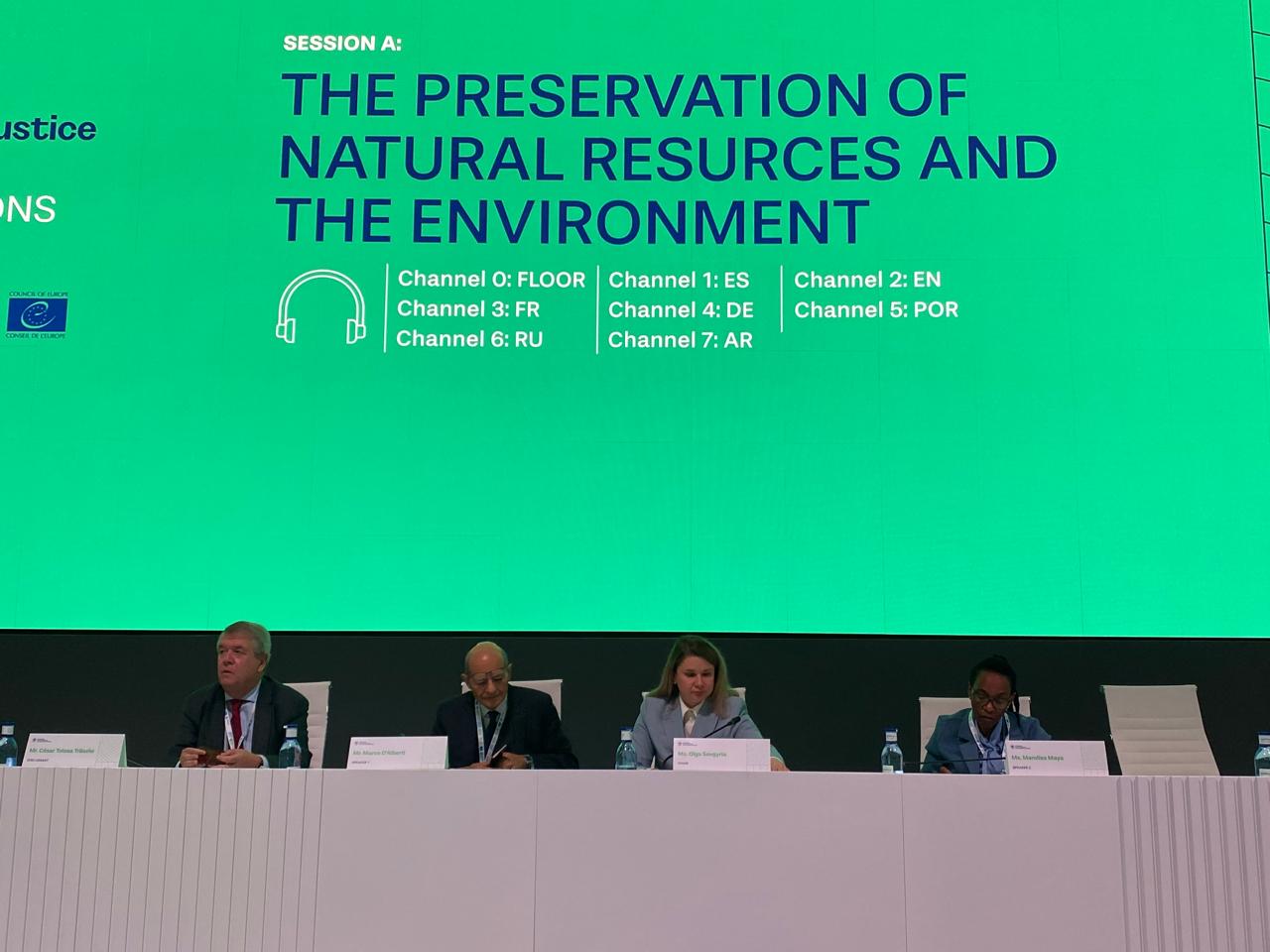 Судья подчеркнула, что тематика сессии Конгресса особенно остро связана с негативными последствиями для окружающей среды, вызванными вооруженными конфликтами: «Война за независимость Украины не только уничтожает города и уносит огромное количество человеческих жизней, но и является катастрофической для окружающей среды: сожжены леса и поля, некоторые виды животных и растений оказались на грани исчезновения, почва и вода загрязнены». Угроза радиационной опасности, связанная с захватом Российской Федерацией Запорожской атомной электростанции, минированием около 150 тысяч квадратных километров суши и акватории Украины, экоцид, вызванный разрушением Россией Каховской гидроэлектростанции – бремя негативных последствий для окружающей среды в связи с войной, выходящее далеко за пределы государственных границ Украины и имеющее значительное влияние на экологическую ситуацию в мире в будущем.