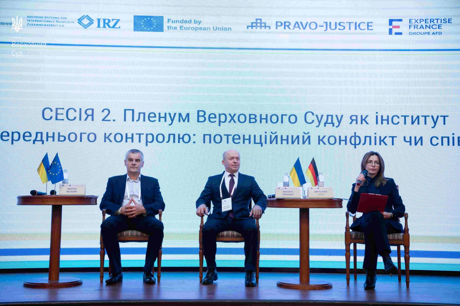 Докладчик отметил, что Пленум Верховного Суда как институт предварительного контроля выполняет важную конституционную функцию – гарантирует единство и предсказуемость правоприменения в сфере публичного права. Его деятельность по принятию решений об обращении в КСУ по вопросам конституционности законов и других правовых актов, а также по официальному толкованию Конституции Украины является формой предварительного конституционного мониторинга, который базируется на обобщении практики административных судов. Таким образом, Пленум ВС – институциональный партнер КСУ в обеспечении конституционного правопорядка.