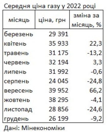 Как сообщает пресс-служба Министерства экономики, в ноябре фактическая цена газа составляла 28,9 тыс. грн за тыс. куб., а в октябре – 38,3 тыс. грн за тыс. куб.