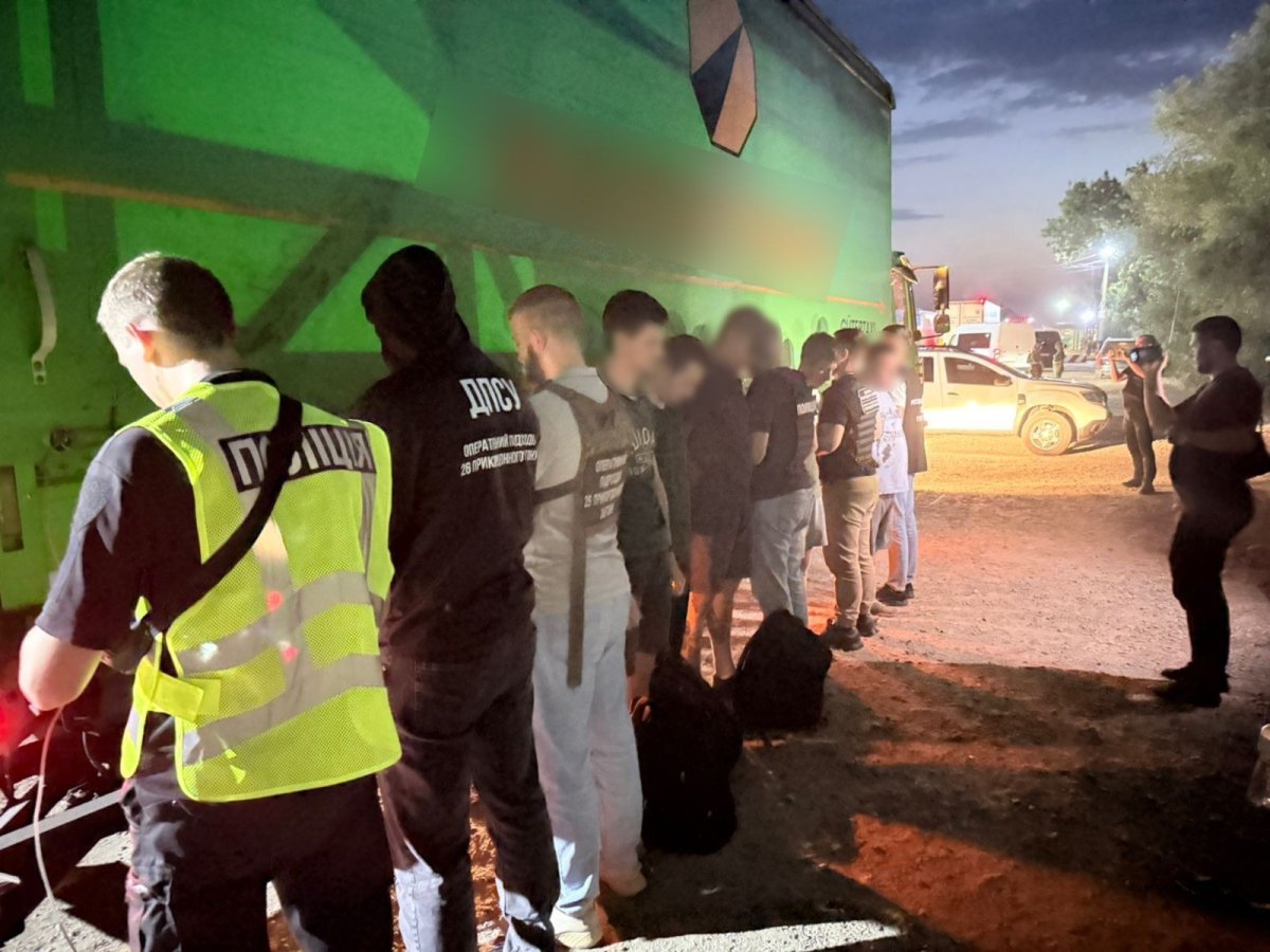Схему реализовывали двое граждан Молдовы — 50 и 28 лет. Они загрузили в грузовик товар в Одессе, а трех уклонистов спрятали под тентовым покрытием позади кабины.
