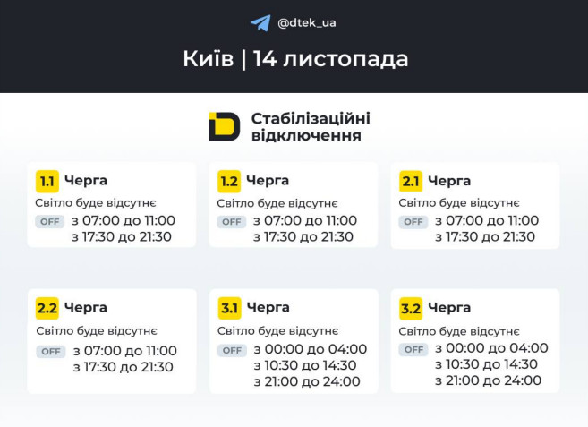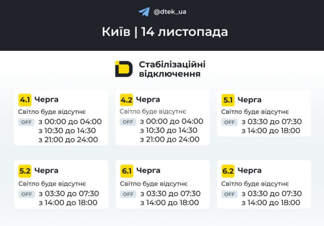 Причиной введения графиков является необходимость сбалансировать энергосистему после массированных российских ракетно-дроновых атак на энергетические объекты.