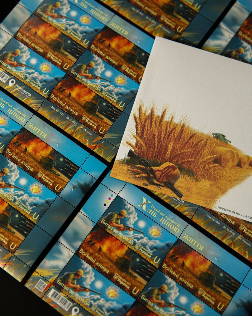 «Укрпочта» выпустила новую почтовую марку «Хлеб ценой жизни», посвященную украинским аграриям, которые продолжают работать на полях даже под российскими обстрелами.