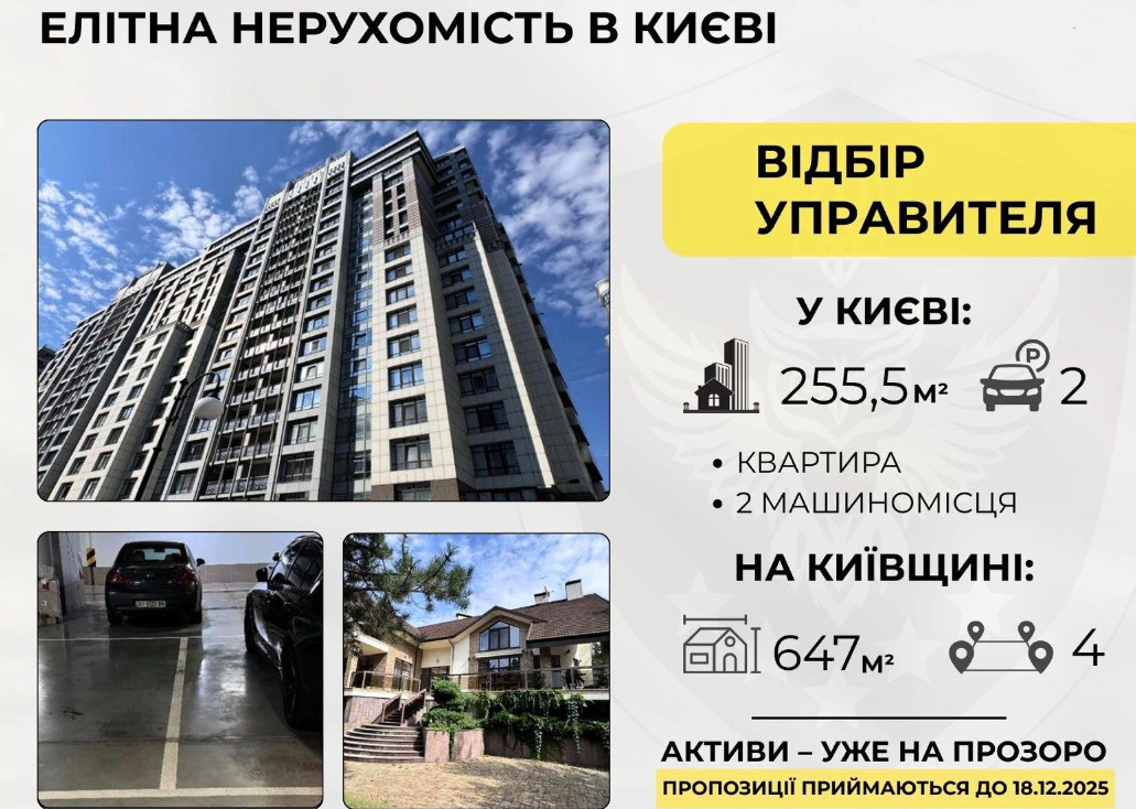 - квартире площадью 255,5 кв. м на Печерске и двух парковочных местах.
