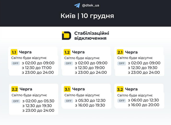 Причиной введения графиков является необходимость сбалансировать энергосистему после массированных российских ракетно-дроновых атак на энергетические объекты.