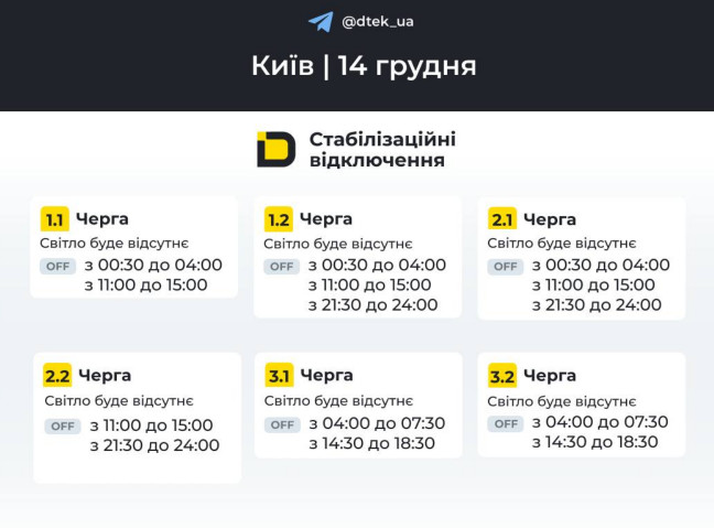 Ранее в Укрэнерго сообщили, как будут отключать свет 14 декабря.