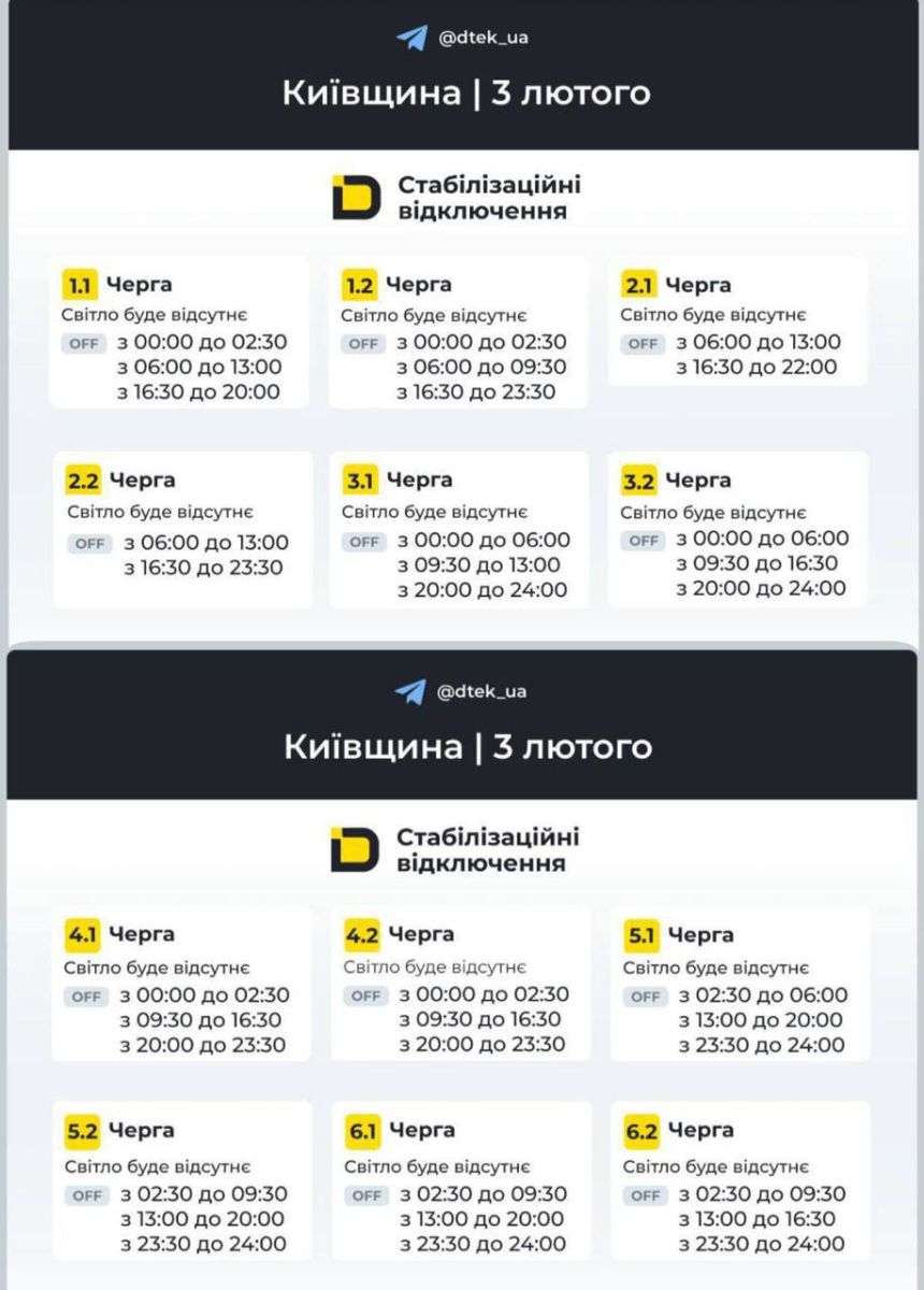 Как будут отключать свет в Киевской области 3 февраля – ДТЭК обнародовал графики