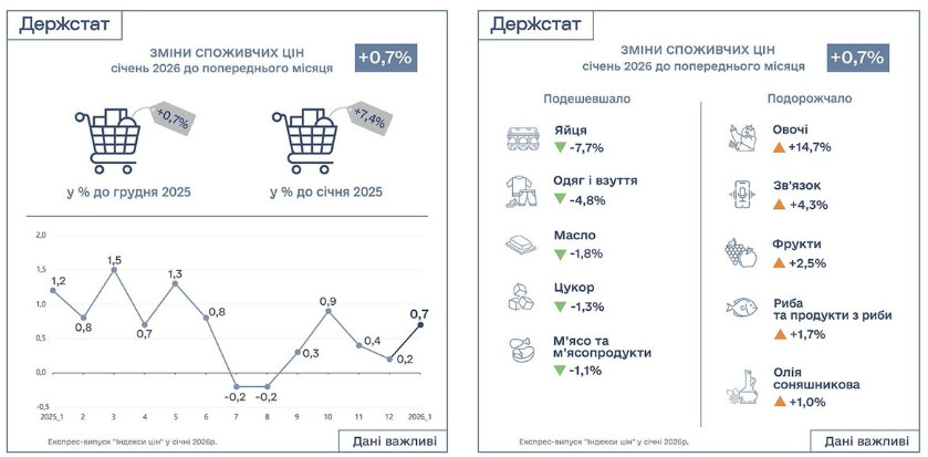 В январе 2026 года потребительские цены в Украине выросли на 0,7 % по сравнению с предыдущим месяцем. Об этом свидетельствуют данные Государственной службы статистики Украины.