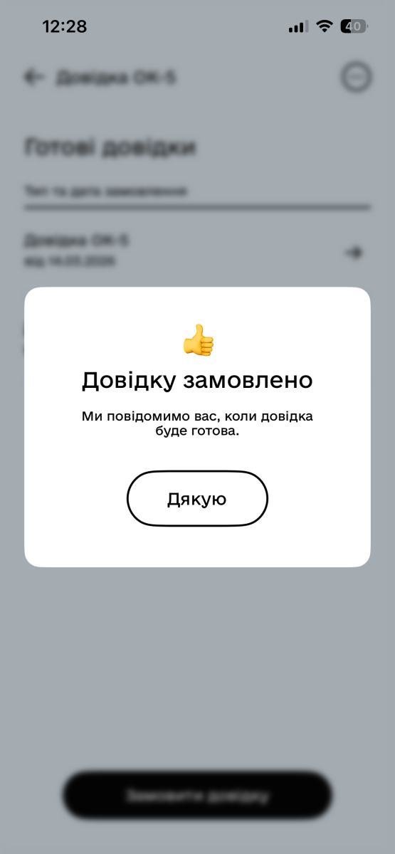 По состоянию на 12:28 в Дии можно заказать справку ОК-5 и ОК-7.