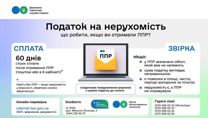 Главное управление ГНС в г. Киеве объяснило, на что прежде всего следует обратить внимание, когда в почтовом ящике или в Электронном кабинете появляется налоговое уведомление-решение (НУР) по налогу на недвижимость.