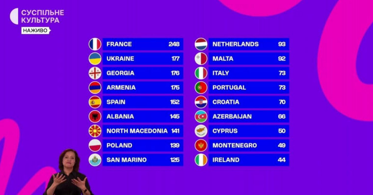 Национальные жюри дали Украине 79 баллов, а зрители — 98 баллов.