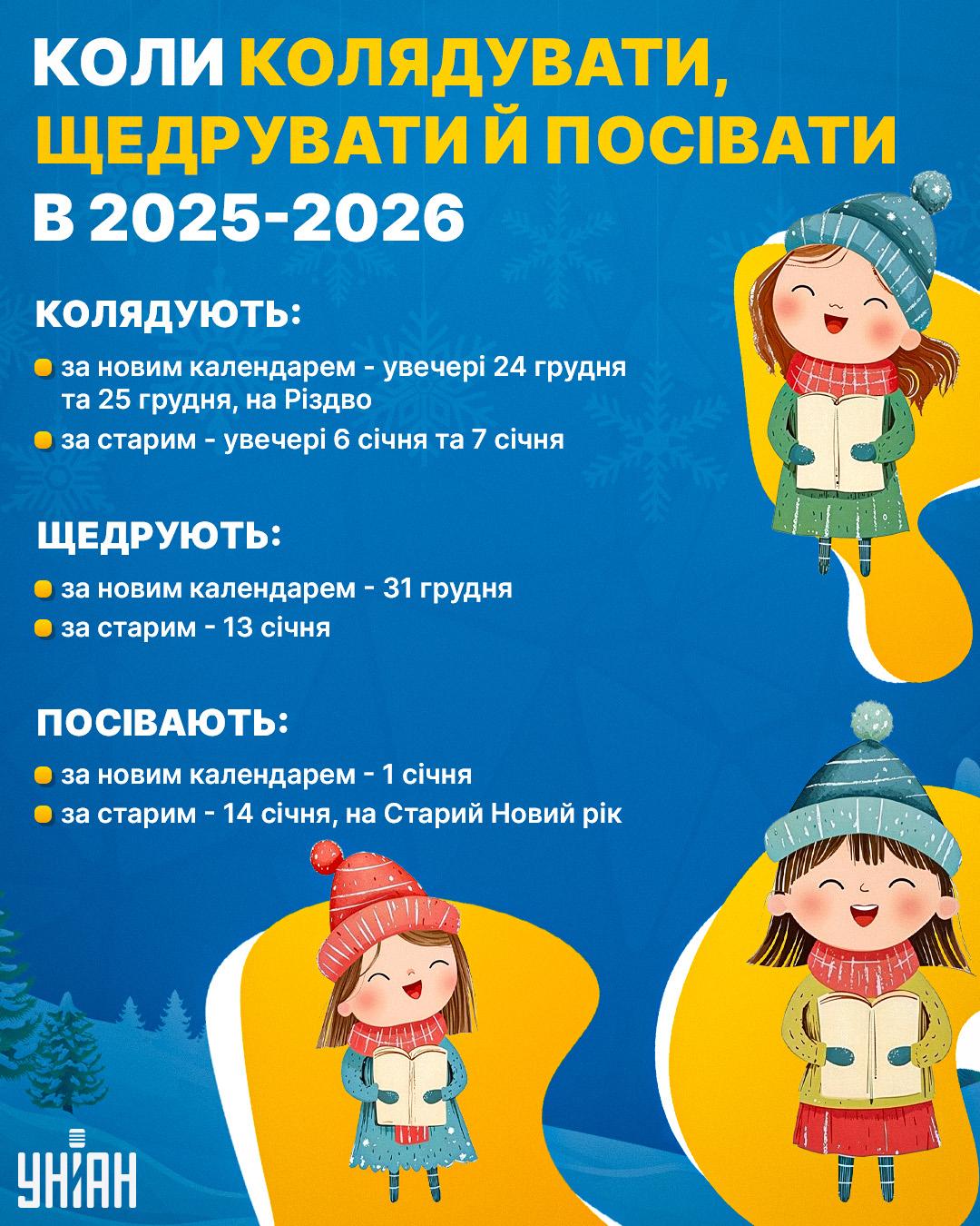 - за новим календарем — увечері 24 грудня 2025 року (Святвечір) та 25 грудня (Різдво);