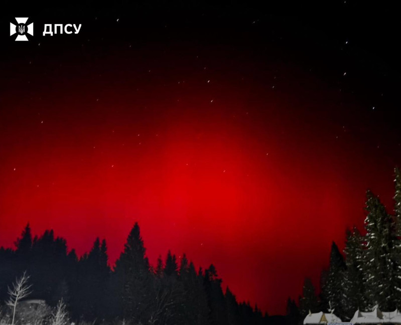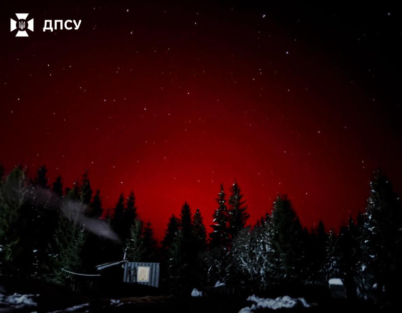 «О третій ночі прикордонники Мукачівського загону зафіксували полярне сяйво над Карпатами», - повідомили у ДПСУ.