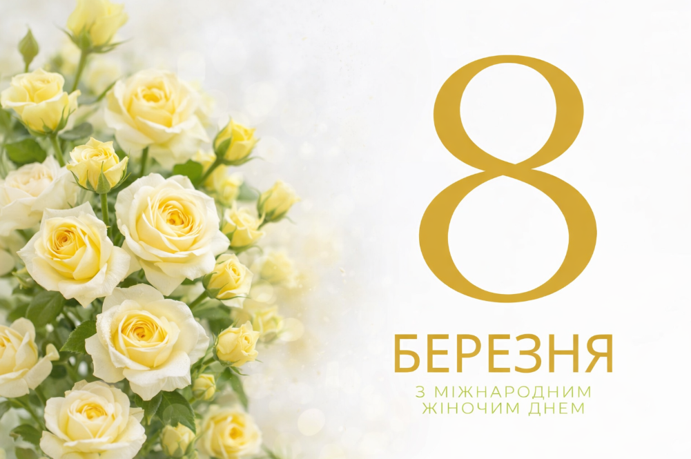 З Міжнародним жіночим днем! Нехай кожен ранок починається з усмішки, а кожен день дарує нові можливості та радісні події. Бажаємо вам міцного здоров’я, добробуту, натхнення і впевненості у власних силах. Нехай поруч завжди будуть щирі люди та вірні друзі.
