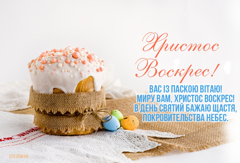 Поздоровляю з Пасхою і від душі хочу побажати світлої дороги до щастя і блага, великої радості для серця і тільки добрих днів в житті. Нехай Господь тебе береже, нехай ангел ніколи не дасть тобі впасти, нехай любов, надія і віра допомагають долати всі труднощі і творити добро!