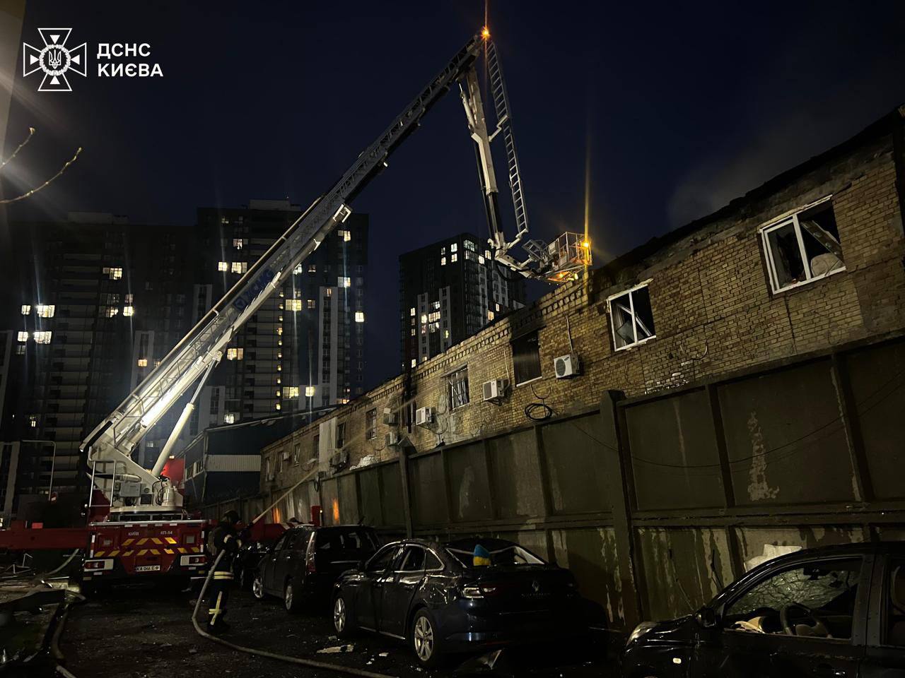 Пошкоджені багатоповерхівки, знищені авто – фото наслідків російського обстрілу Києва
