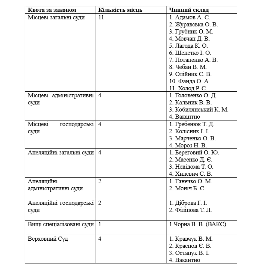 Склад Ради суддів України за квотами та чинними представниками.