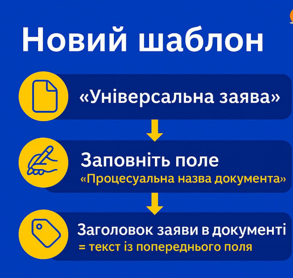 Державне підприємство «Інформаційні судові системи» повідомило, що у ЄСІТС було впроваджено новий шаблон «Універсальна заява» для подання звернень до суду в електронній формі.