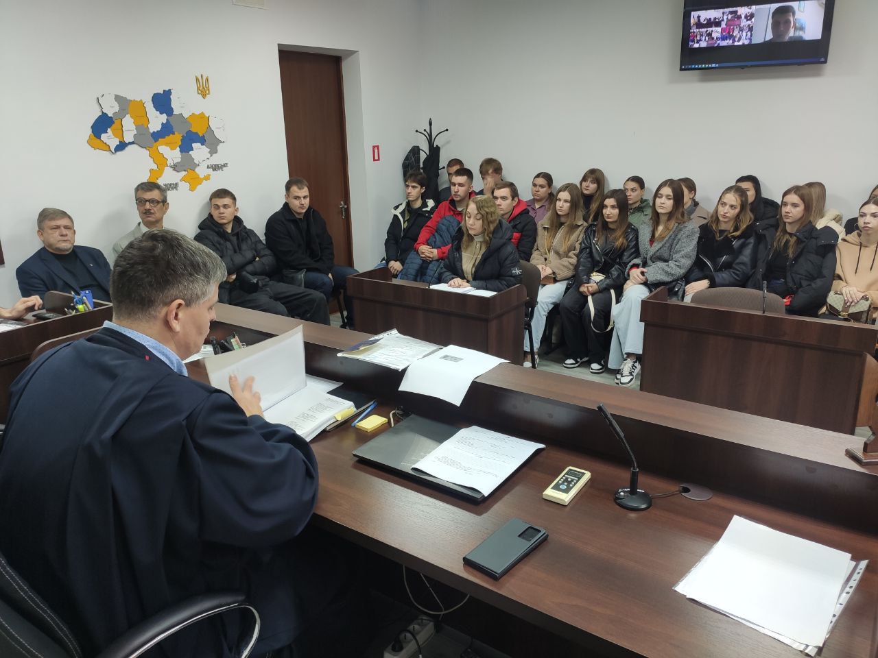 Суд відвіли студенти третього курсу юридичного факультету Університету митної справи та фінансів. Разом із ними на зустрічі були присутні ректор Дмитро Бочаров та перший проректор, голова вченої ради Віктор Ченцов. Керівники університету наголосили на важливості залучення студентів до реальних аспектів роботи судової системи.