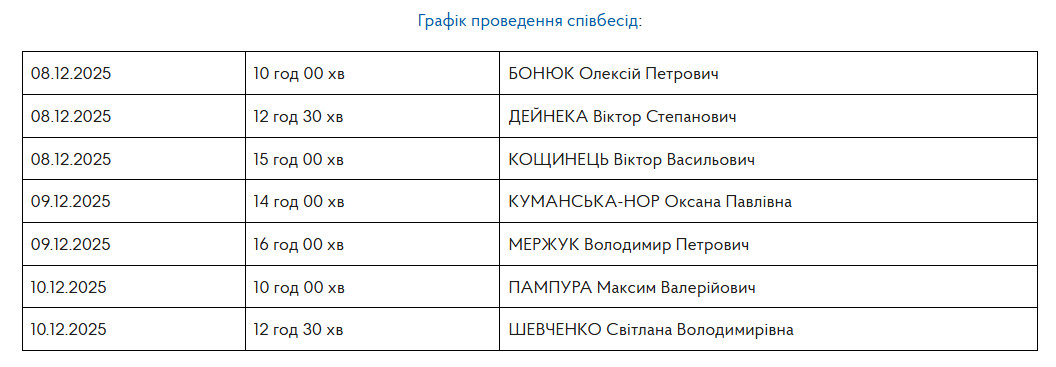 8 грудня розпочнеться проведення співбесід із кандидатами на посаду голови ДСА