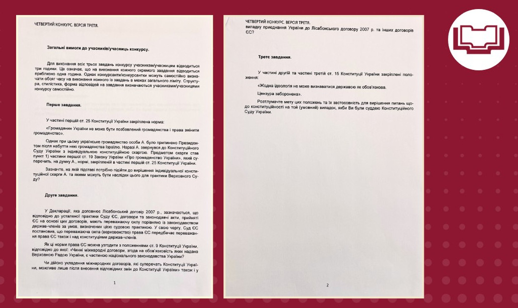 Дорадча група експертів опублікувала завдання, яке кандидати на посаду судді КСУ виконували 23 грудня, під час письмового оцінювання рівня компетентності в сфері права.