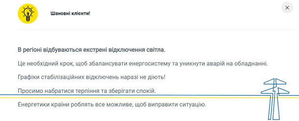 "Це необхідний крок, щоб збалансувати енергосистему та уникнути аварій на устаткуванні... Енергетики країни роблять все можливе, щоб виправити ситуацію", - зазначили у ДТЕК.