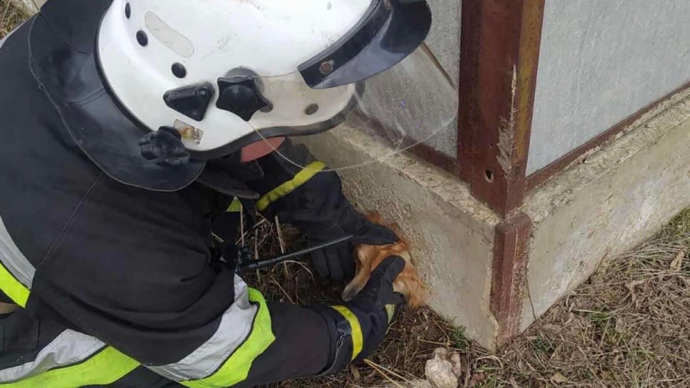 В Рені Одеської області врятували собаку, який застряг в отворі бетонного забору житлового будинку. Про це повідомили рятувальники ДСНС.