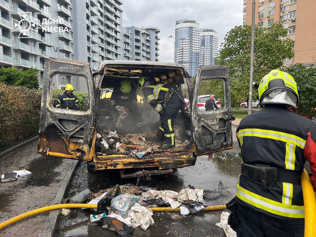 Як розповіли в Головному управлінні ДСНС України у м. Києві, повідомлення про загоряння надійшло о 14:11, 7 жовтня. Вогонь спалахнув у припаркованій вантажній «Газелі».