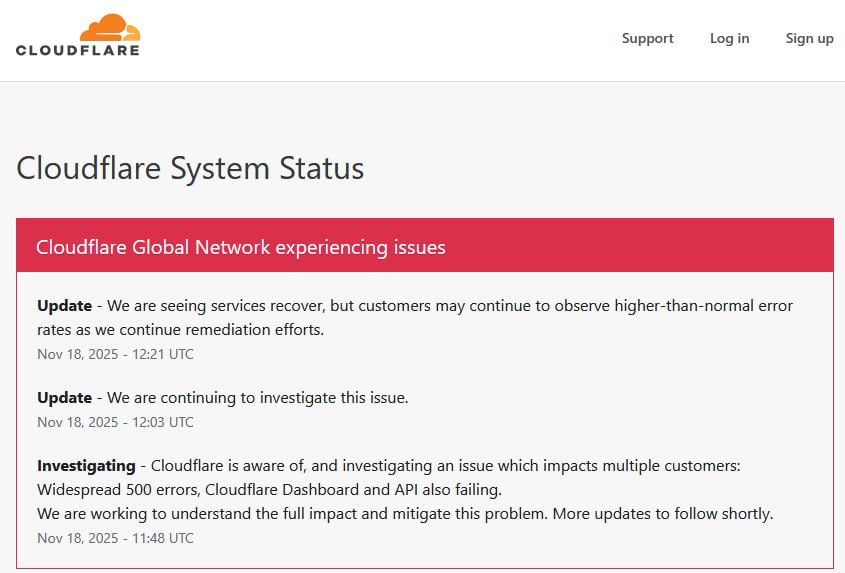 За попередньою інформацією, ймовірною причиною є збій у роботі Cloudflare — одному з найбільших провайдерів CDN та хмарної безпеки.