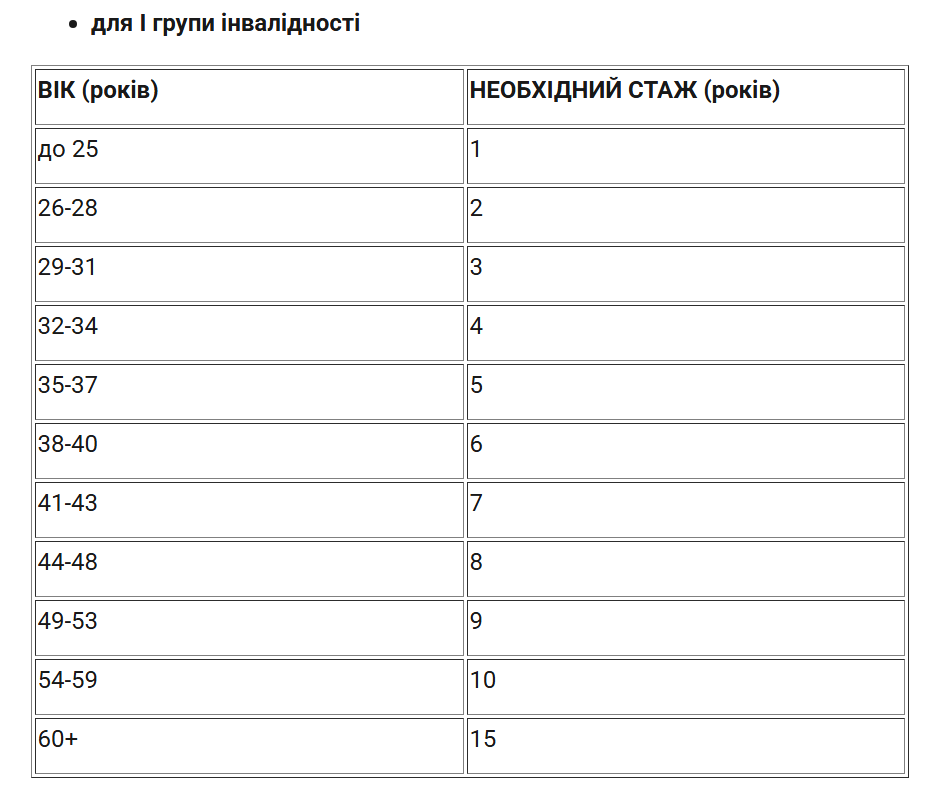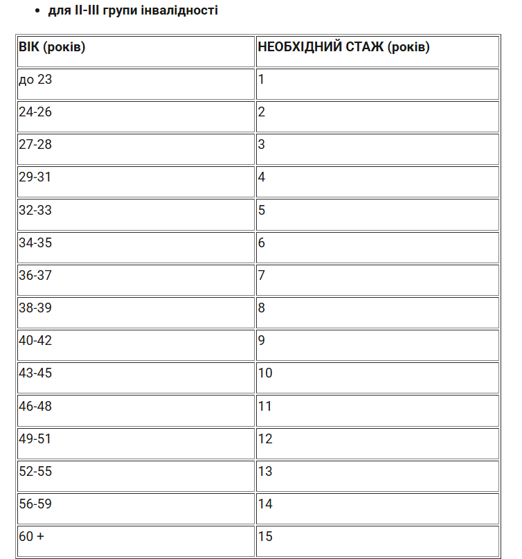 Необхідний стаж визначено: