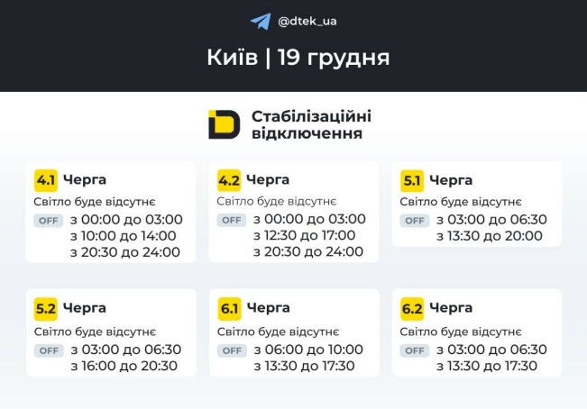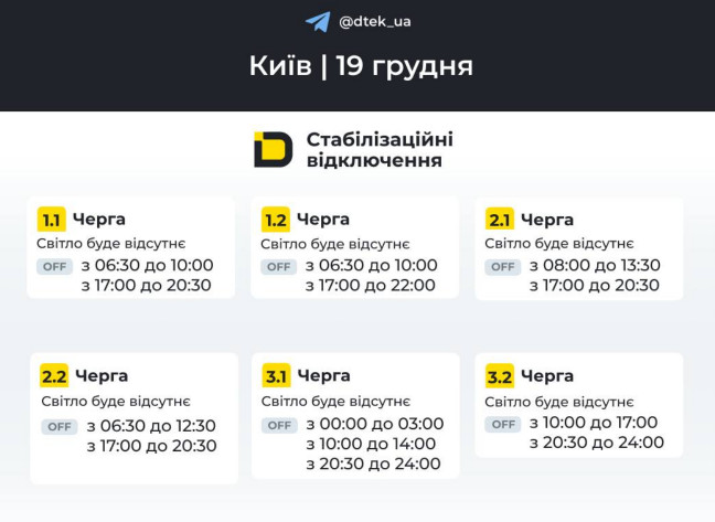 Оприлюднили графіки відключення світла у Києві на 19 грудня