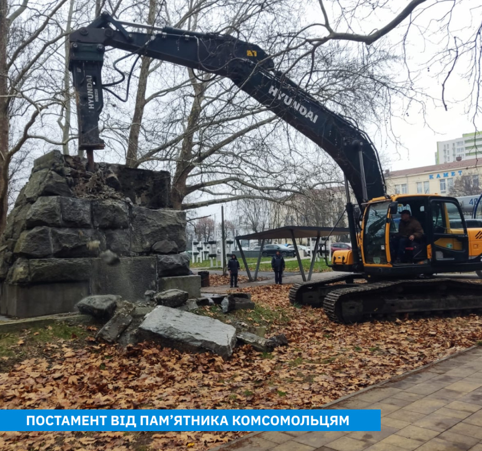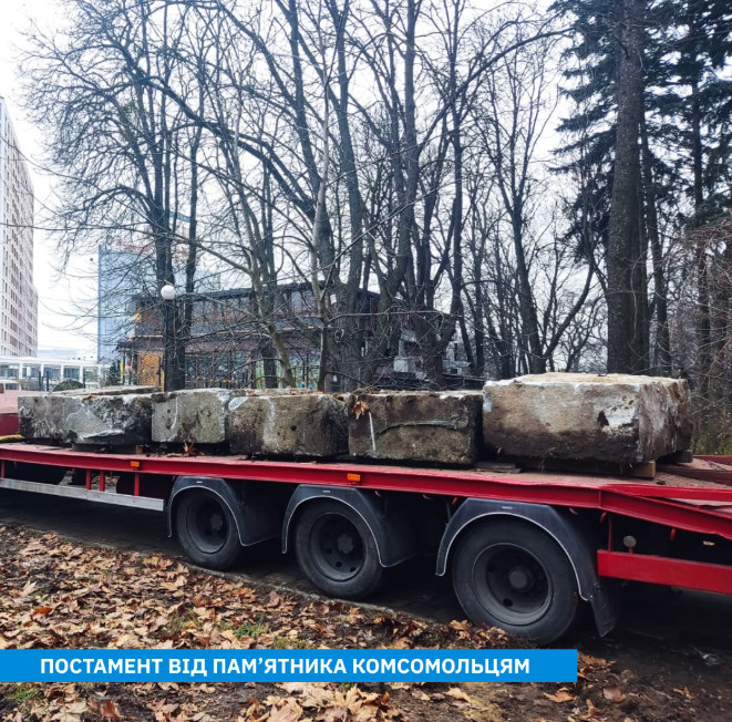 Комунальні служби столиці продовжують очищення публічного простору від елементів радянської символіки. Найбільшим об’єктом демонтажу став п’єдестал у парку «Нивки», де раніше розташовувався пам’ятник комсомольцям 1920-х років.