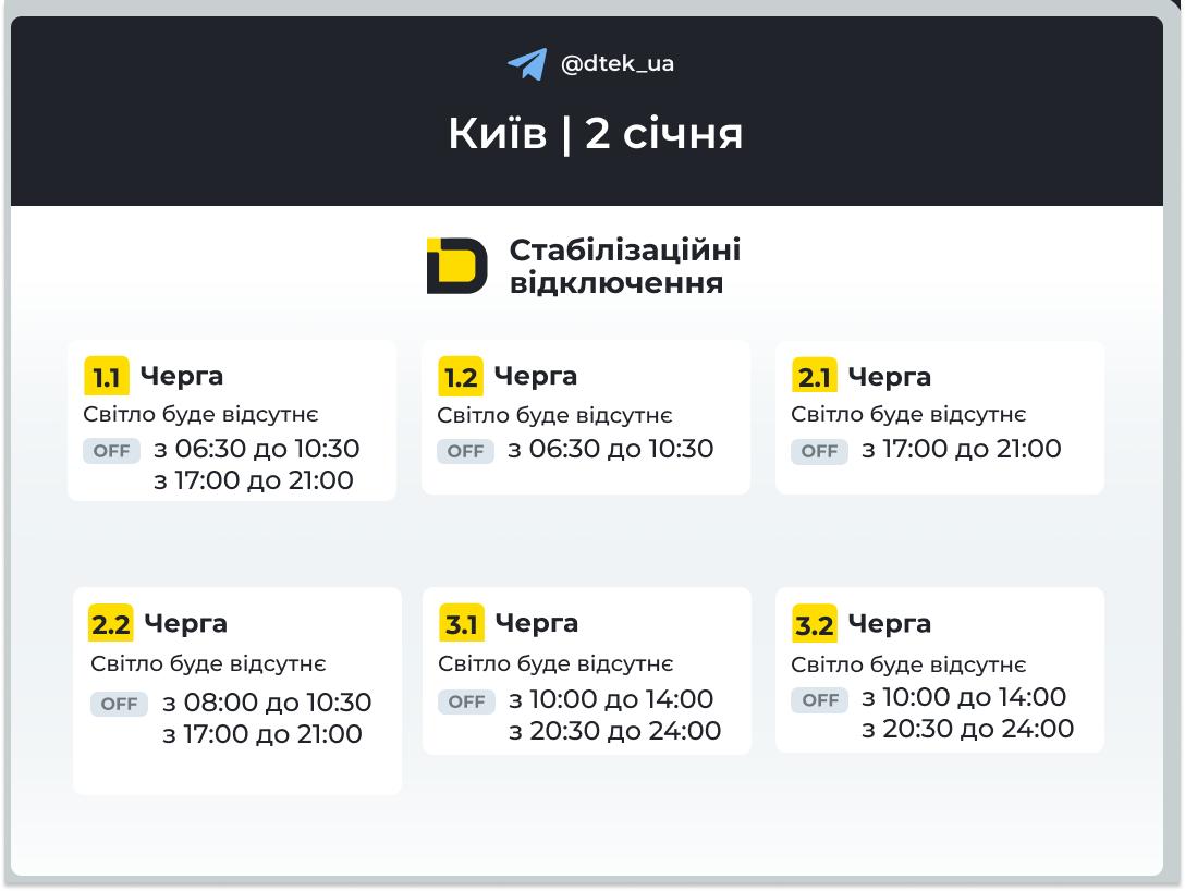 Оприлюднили графіки відключення світла у Києві на 2 січня