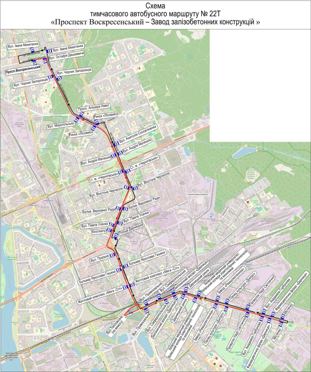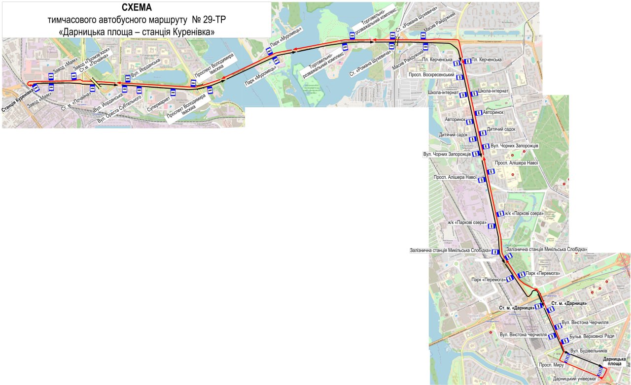 29т – ст. м." Бориспільська – ст. м. "Лісова";