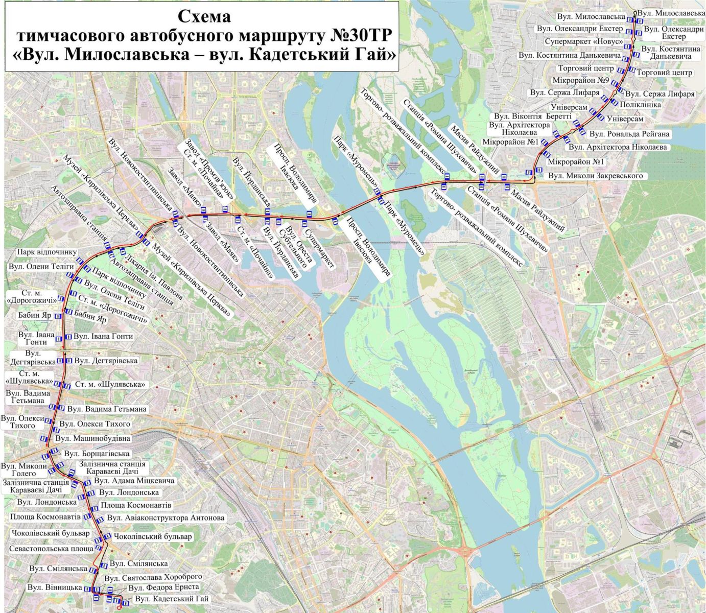 30тр – вул. Милославська – вул. Кадетський Гай;