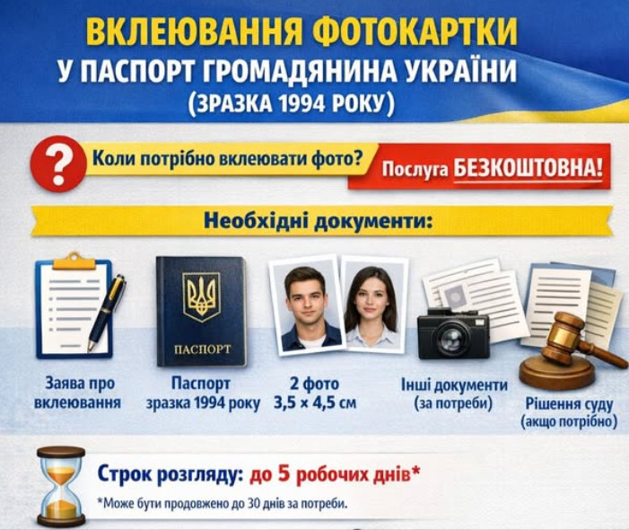 «Фотокартка вклеюється після досягнення відповідного віку (25-ти та 45-ти років). Послуга безкоштовна», - заявили у відомстві.