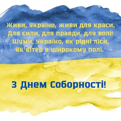 У цей день Україна вшановує ідею соборності як фундамент державності та національної ідентичності. Сьогодні єдність — не лише історичний символ, а щоденна відповідальність кожного. Бажаємо українцям сили, взаєморозуміння та віри у спільну перемогу. Нехай країна розвивається в мирі та злагоді.