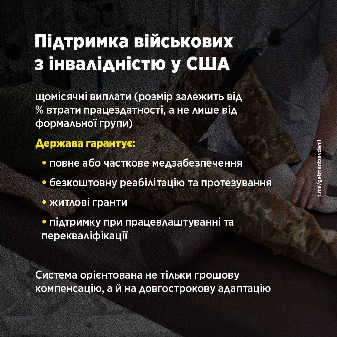 Також Гетманцев підкреслив, що досвід країн із тривалим воєнним минулим свідчить: підтримка військових з інвалідністю має базуватися не лише на формальному статусі чи разових виплатах, а на комплексному та безперервному супроводі особи після поранення.