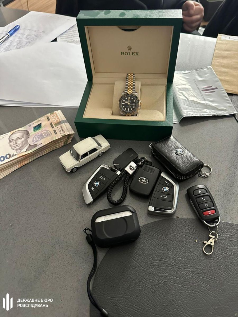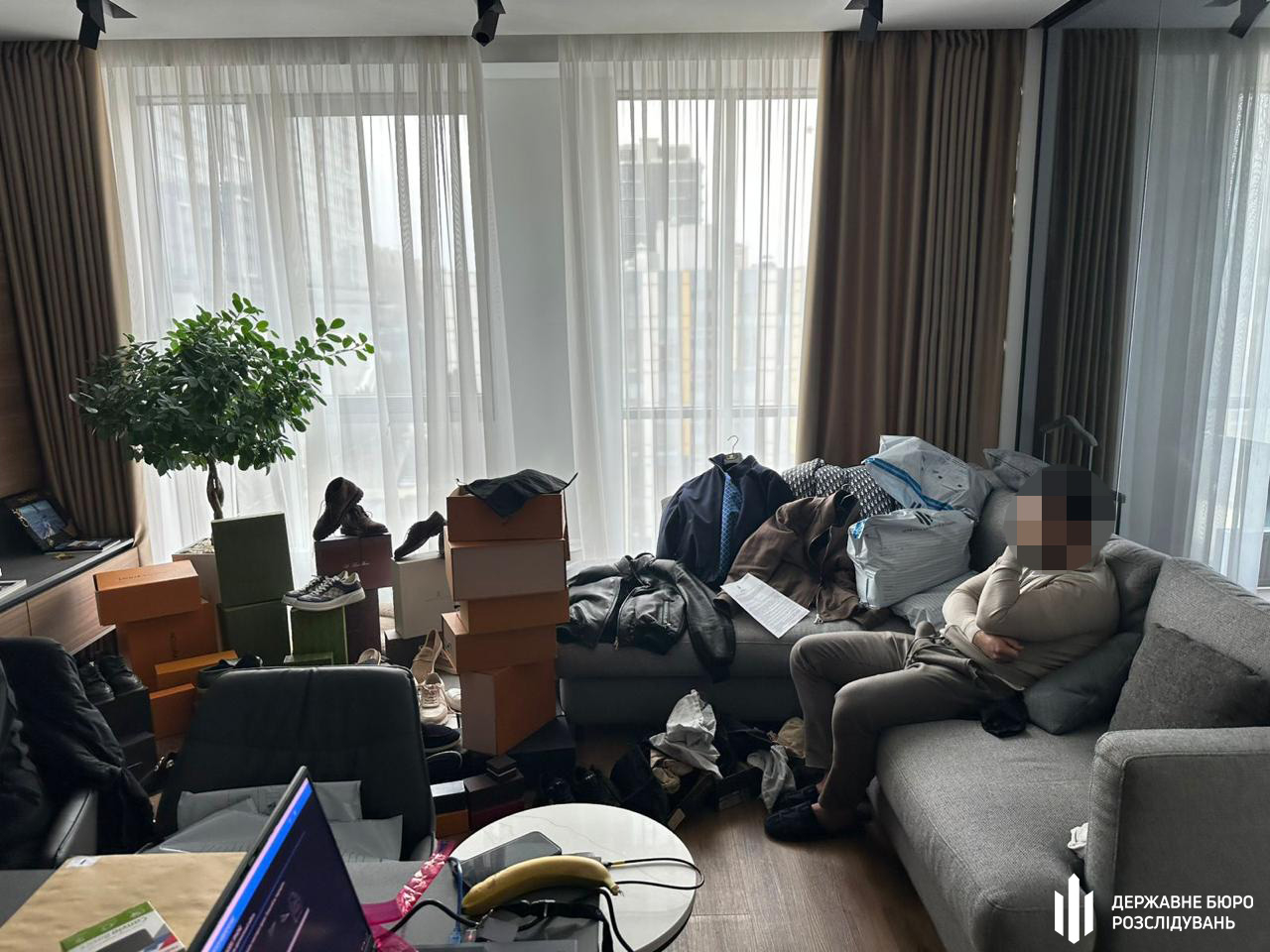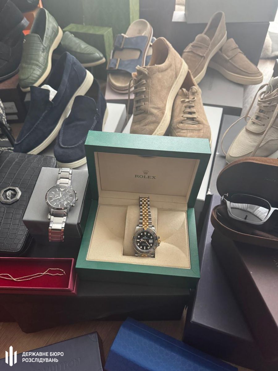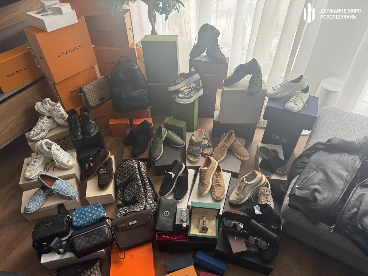 Під час обшуків у підозрюваного вилучили автомобілі, документи на елітну нерухомість, колекцію брендового одягу, взуття та аксесуарів орієнтовною вартістю понад 8 млн гривень, а також боргові розписки на 120 тисяч доларів.