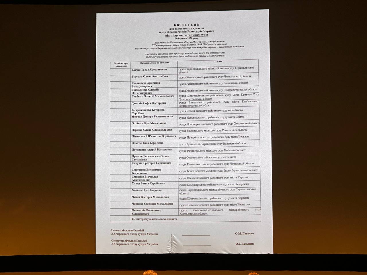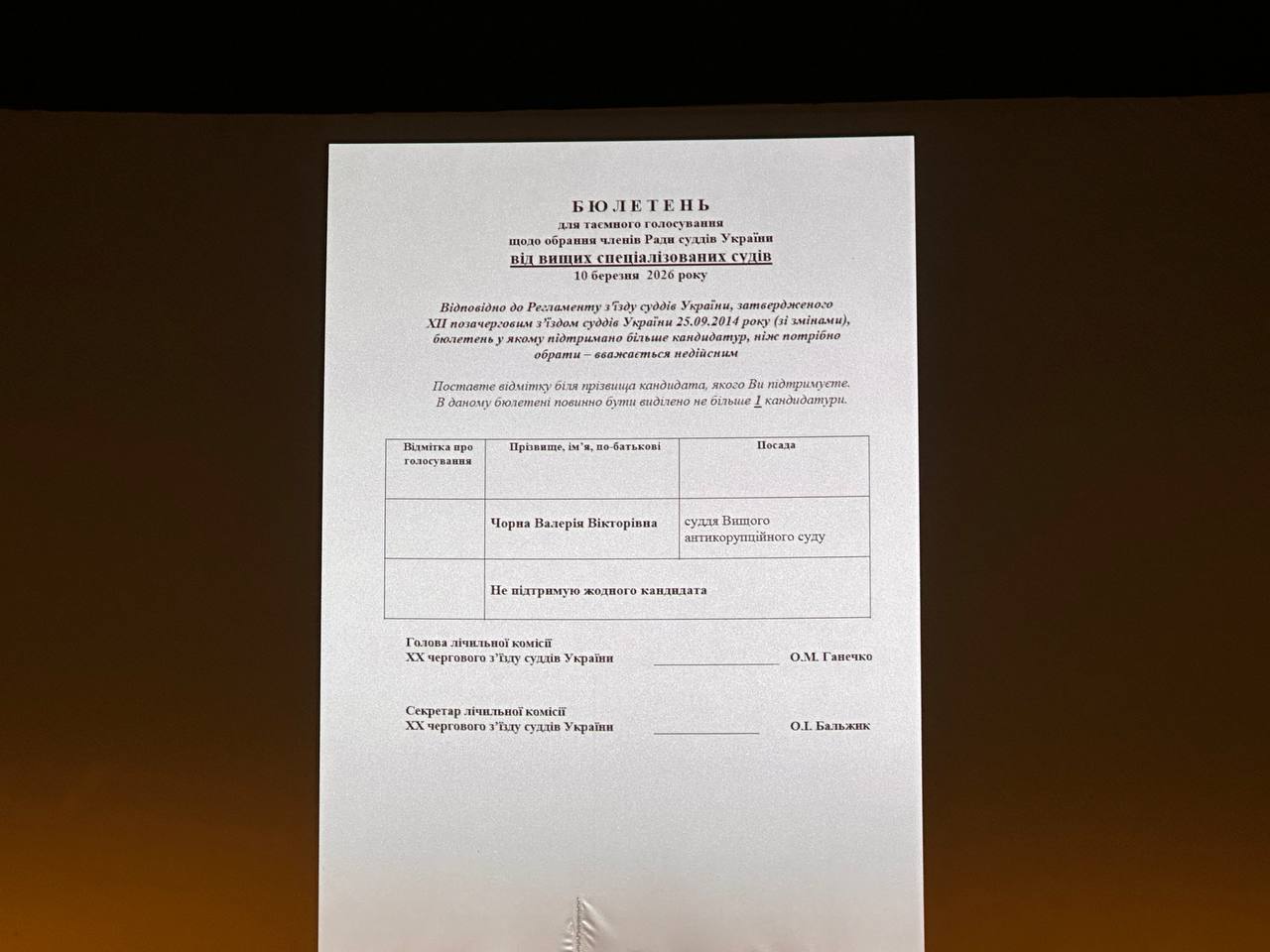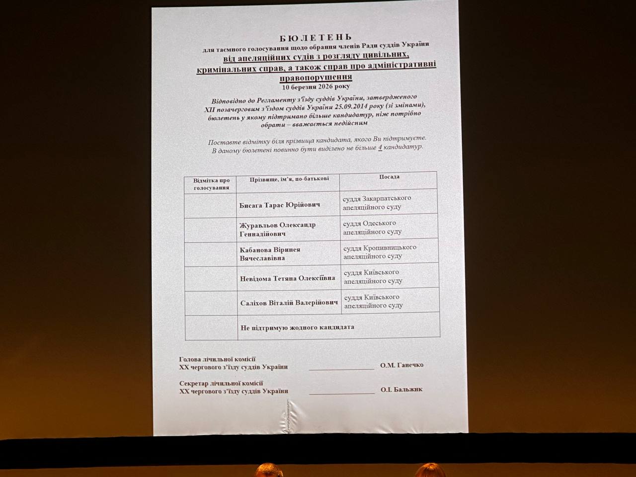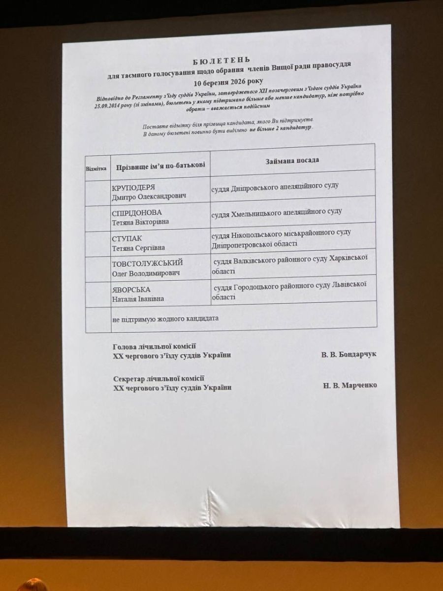 Лічильна комісія оголосила результати та запропонувала з’їзду ухвалити рішення про обрання членами Вищої ради правосуддя строком на 4 роки: