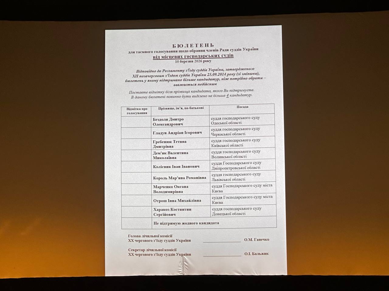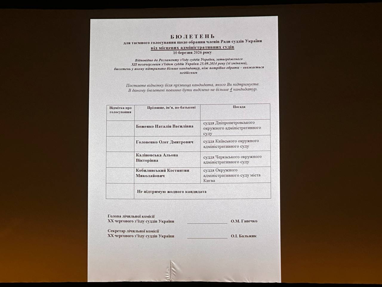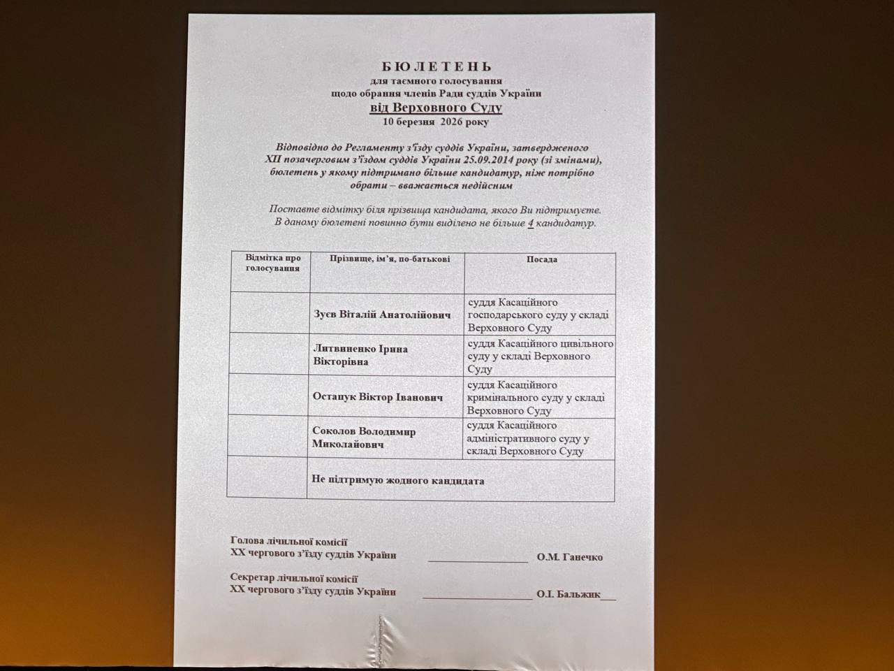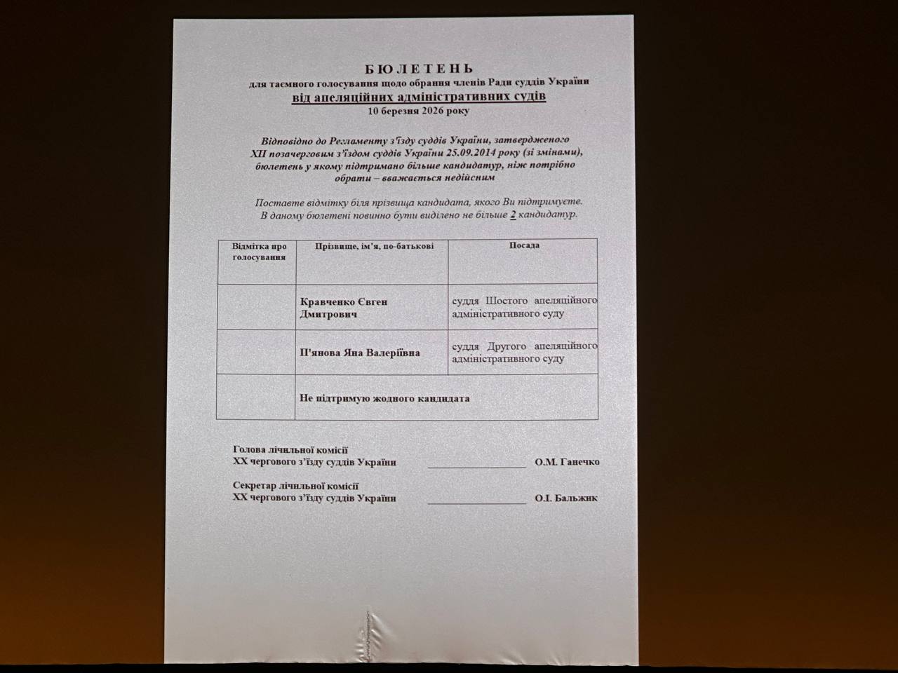 Лічильна комісія оголосила результати та запропонувала з’їзду ухвалити рішення про обрання членами Вищої ради правосуддя строком на 4 роки: