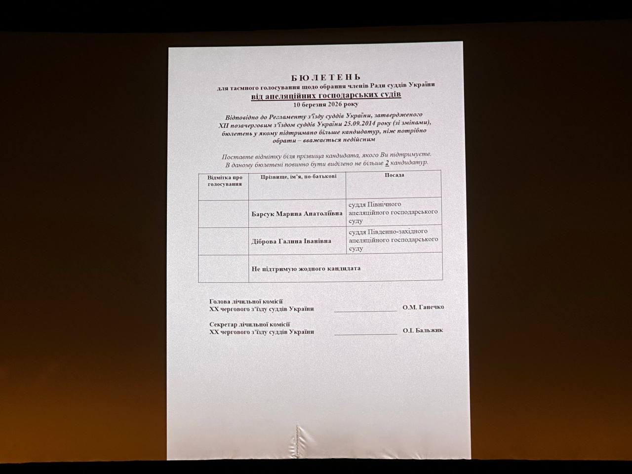 13:25 Затверджено склад лічильної комісії та форму бюлетеню.