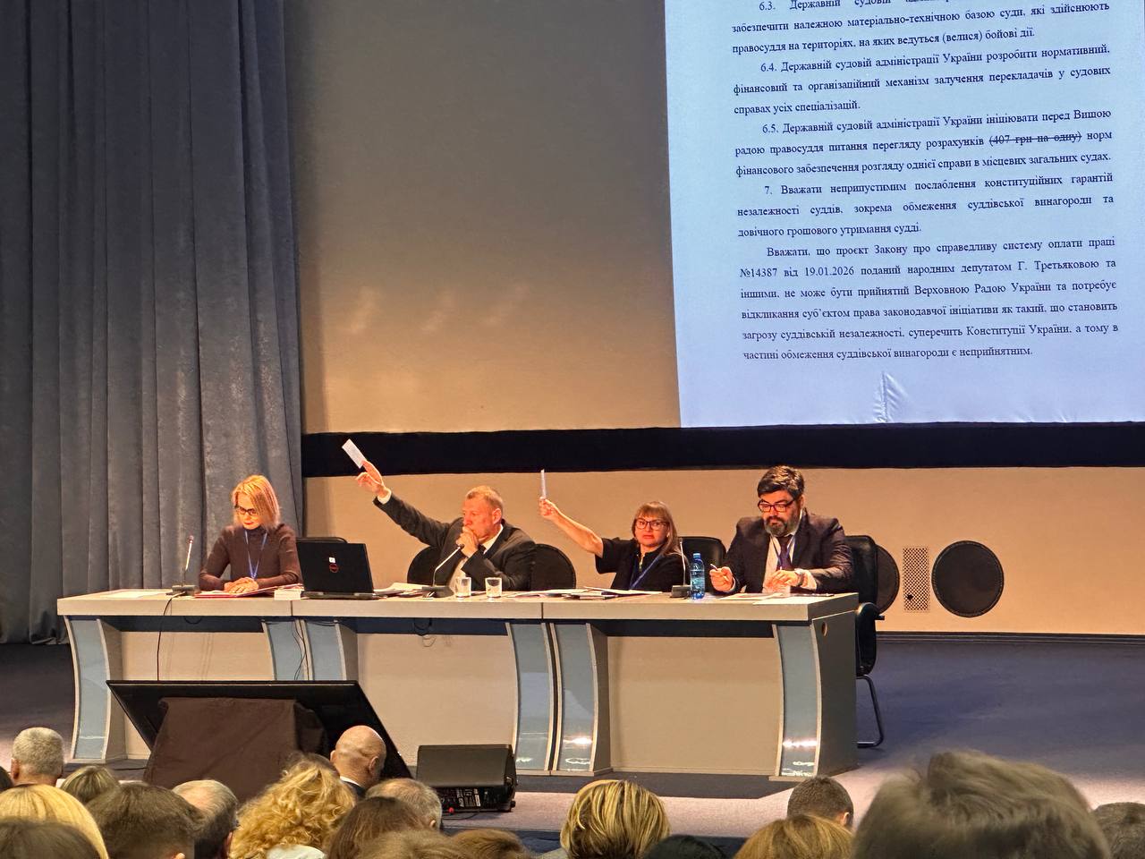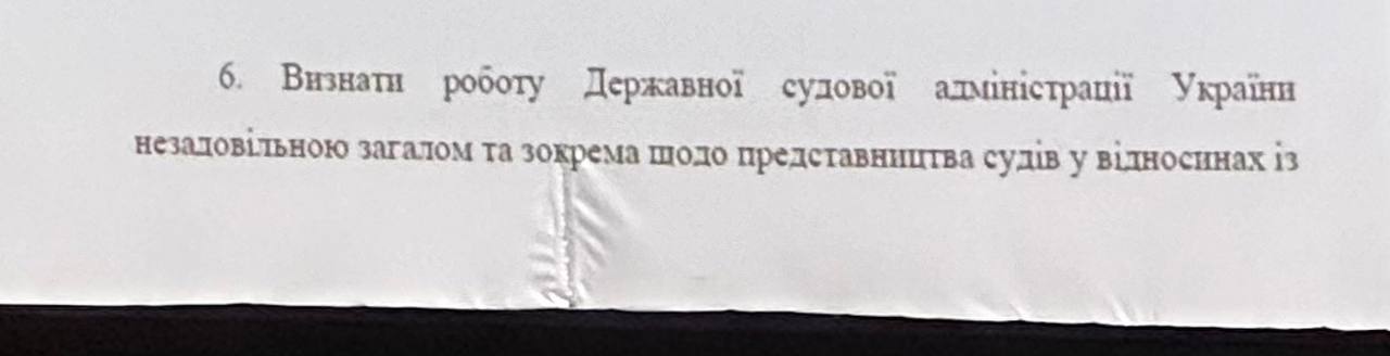 В результаті голосування було визнано роботу Державної судової адміністрації незадовільною, решту пунктів автор зняв з голосування.