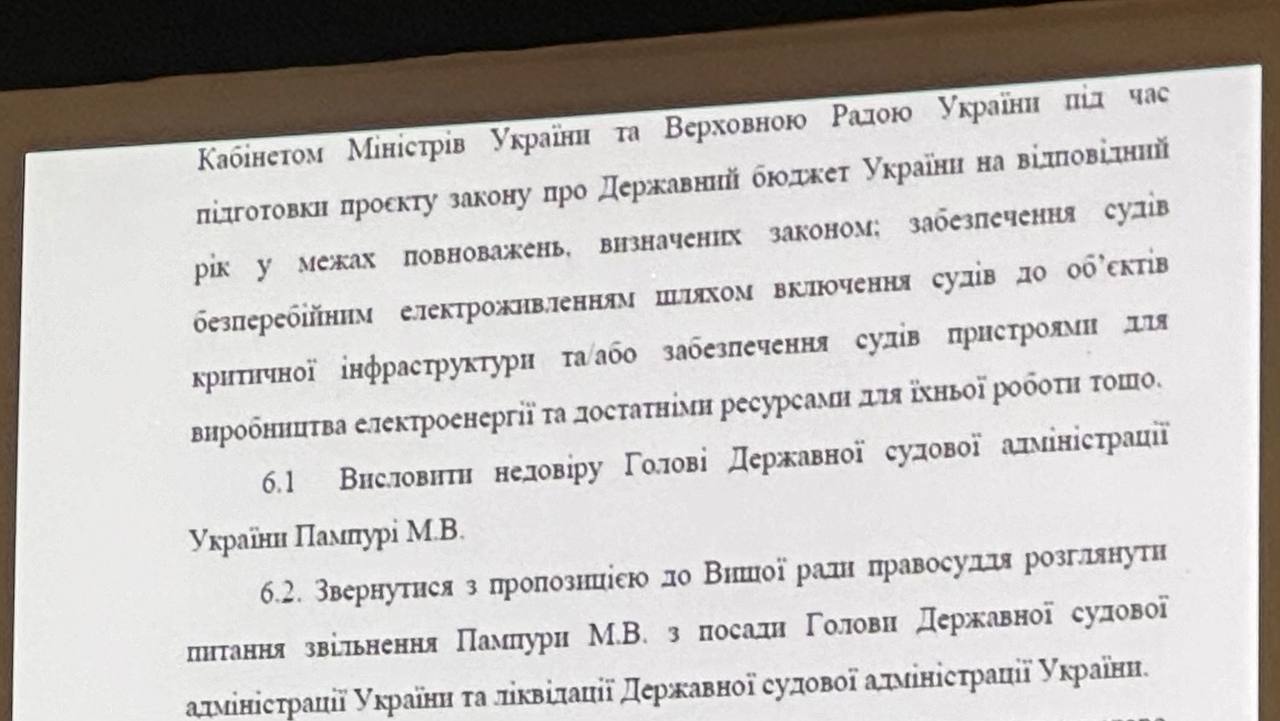 Делегати також запропонували визнати роботу Державної судової адміністрації незадовільною, запропонували висловити недовіру її голові Максиму Пампурі та звернутися до Вищої ради правосуддя щодо розгляду питання про його звільнення.
