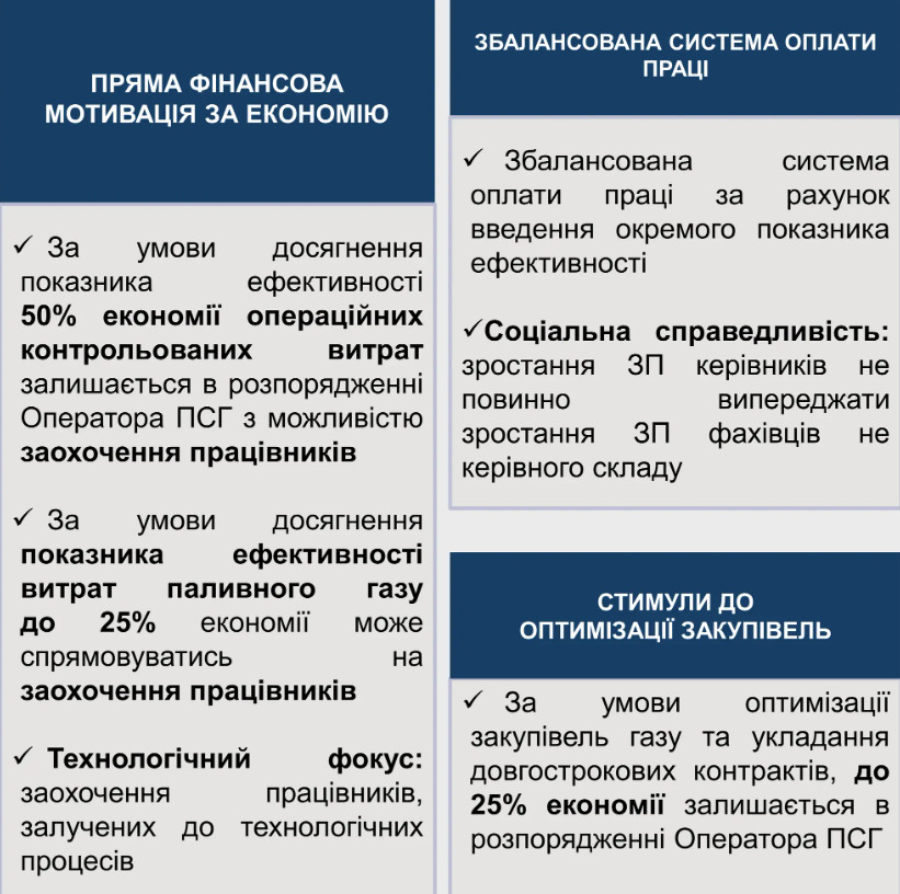 Економічна ефективність: система стимулів спонукає оператора газосховищ до скорочення неефективних витрат та підвищення продуктивності.